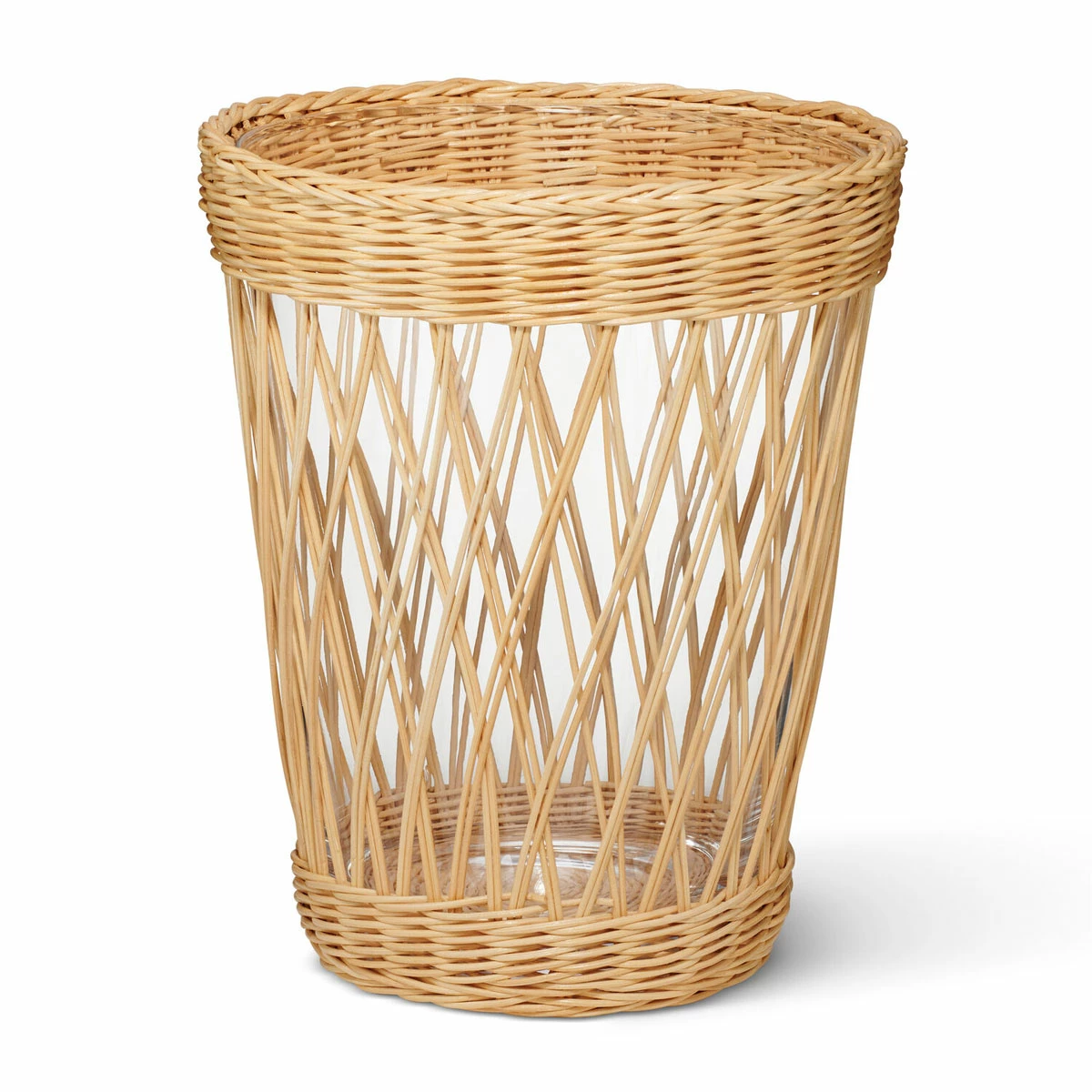 This wicker vase was inspired by a vintage Italian basket and is crafted using a traditional artisanal weave technique. Its natural hue is truly versatile, adding warmth and an organic touch wherever it is placed. Styled with a wide opening, it includes a glass vessel within the woven frame, offering an interplay between light and shade to beautifully display an arrangement of flowers. L: 8.3″ W: 8.3″ L: 10″ PL 211 Metal Aerin Aerin 811858037113 21122081AE Wicker Vase Wicker Navona 10″ Aerin