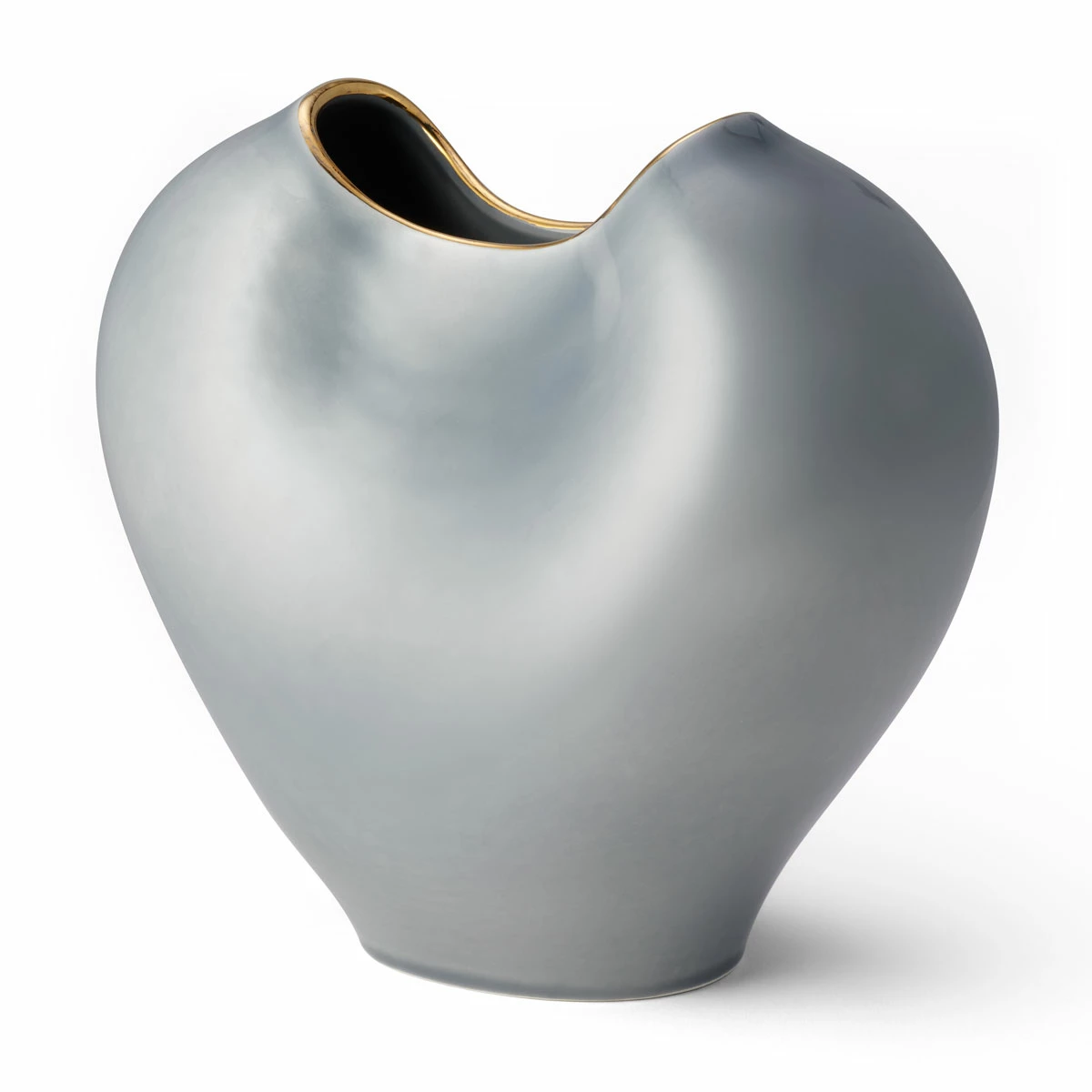 Crafted by artisans in Italy, the concave shape of this large vase is enhanced with a transparent glaze that provides a unique variation. It is further elevated by a hand-painted gold rim. The vase looks beautiful alone or with long-stemmed flowers. H: 9.5″ W: 5″ IT 211 Metal Aerin Aerin 811858032699 19222028AE Blue Dusk Vase 9.5″ Paola Aerin