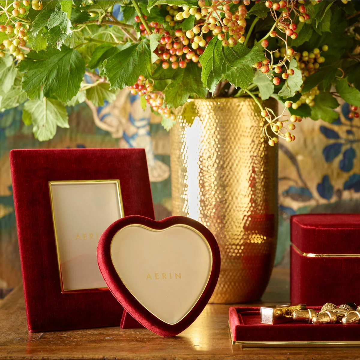 Aerin Valentina Velvet Heart Frame, Cinnabar