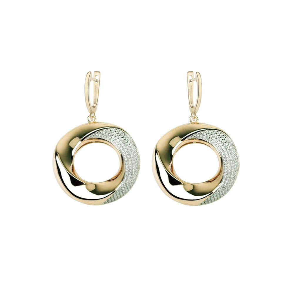 These earrings feature sterling silver 18k gold-plated circles enhanced with sparkling pave of Cashs clear crystals.