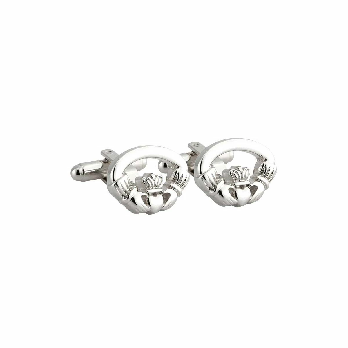 Cashs Crystal Cashs Ireland, Rhodium Claddagh Cufflinks Pair