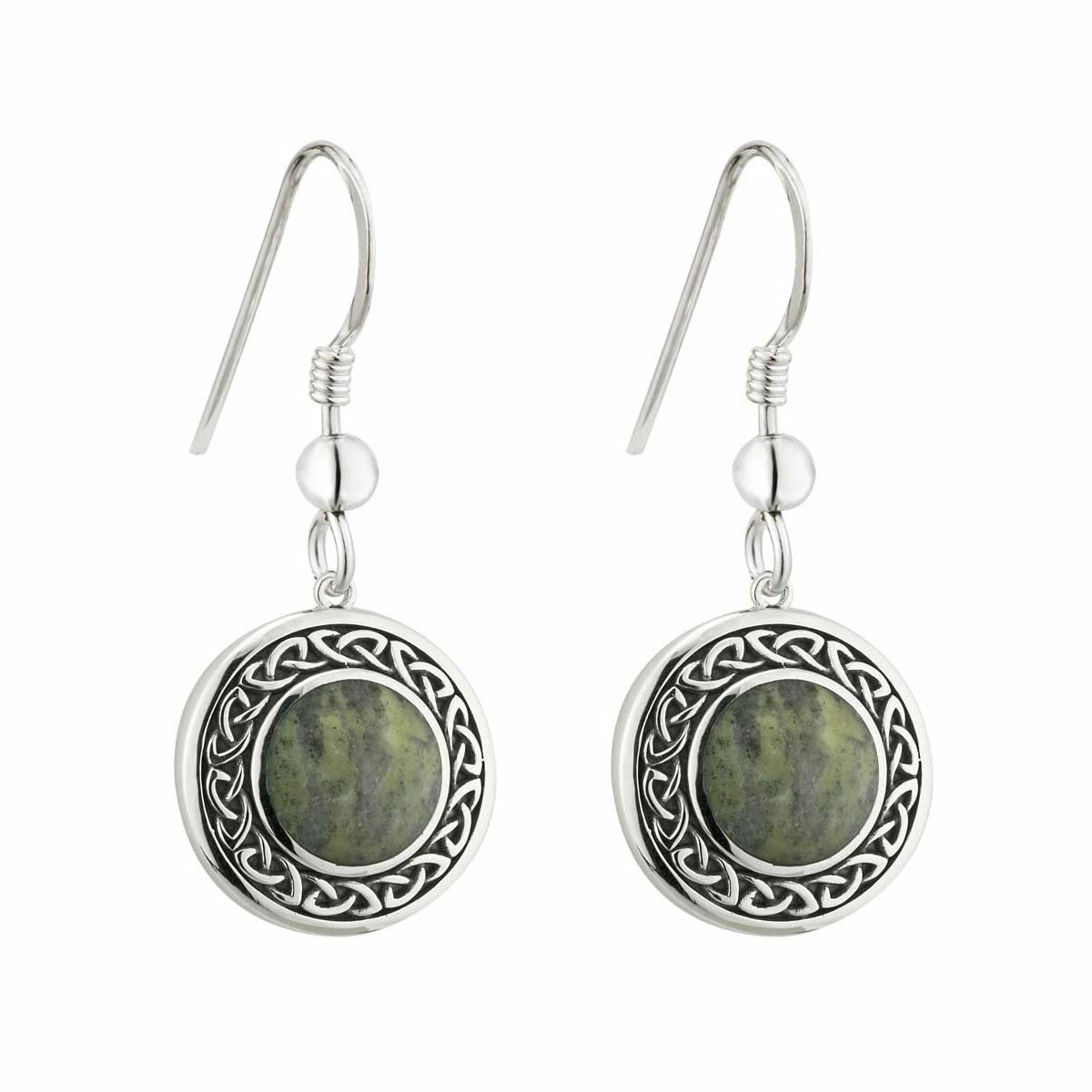Cashs Crystal Cashs Ireland, Sterling Silver And Connemara Marble Round Celtic Drop Earrings Pair