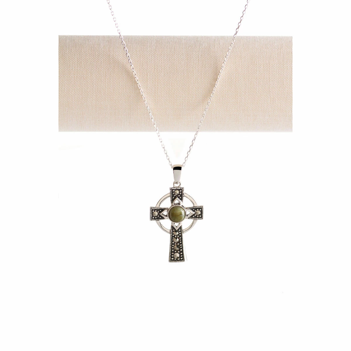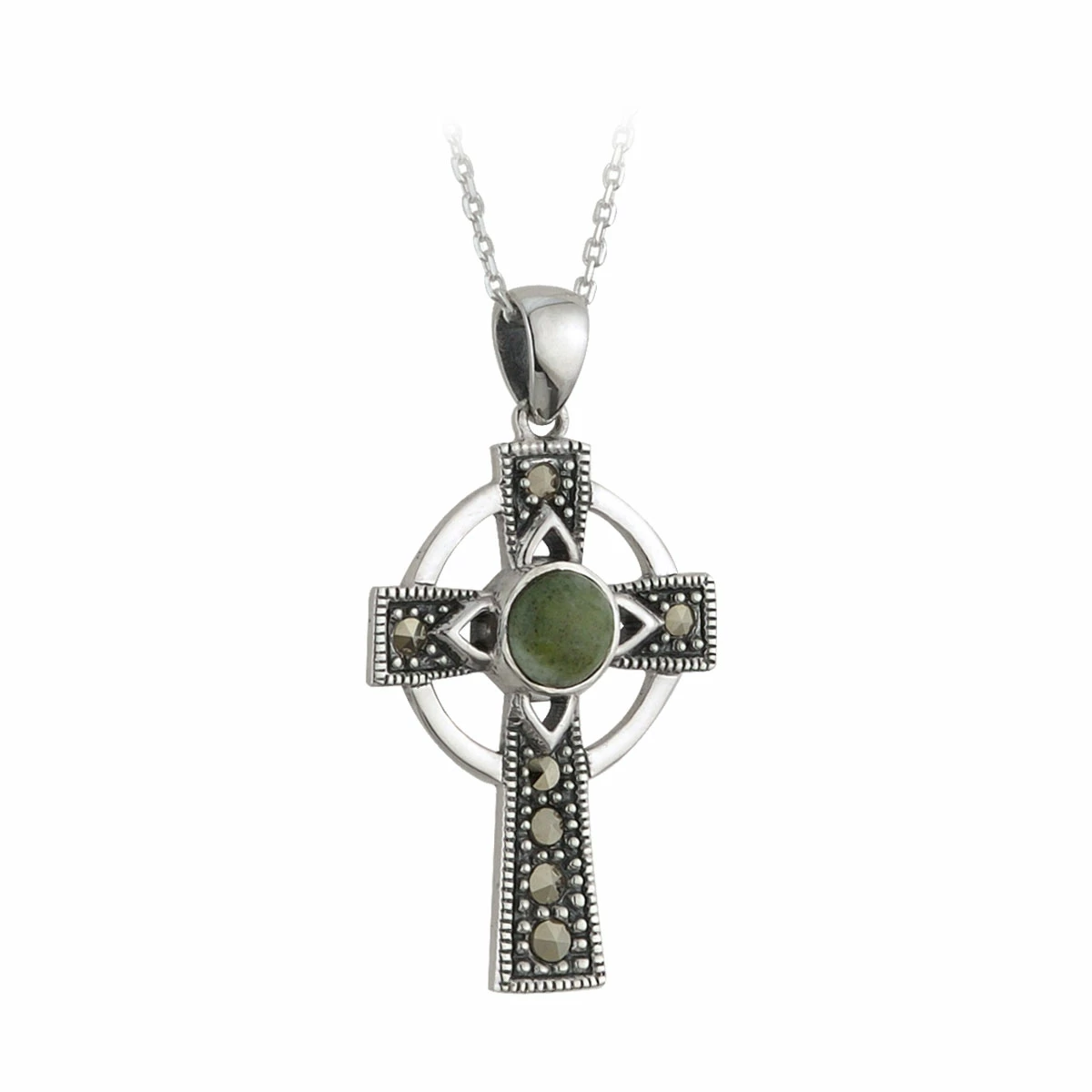 Handmade in Ireland. 1 Chain 18+ IE 213 Jewelry Solvar Jewellers Cashs Crystal 852669722485 S44727C Necklace Pendant Marble Connemara Round With Cross Silver Sterling Ireland Cashs Mother Easter