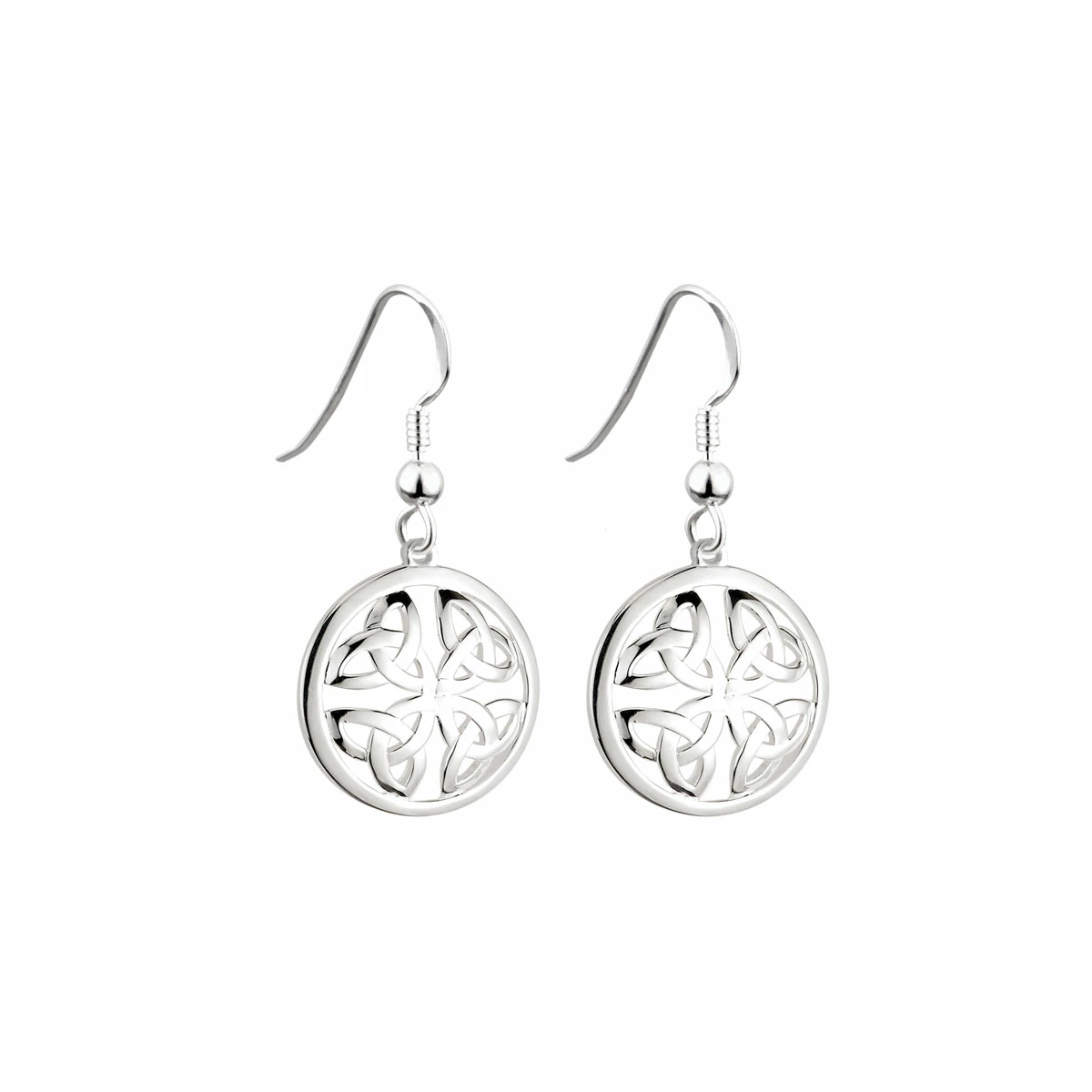 Handmade in Ireland. 1 1/4″ IE 216 Jewelry Solvar Jewellers Cashs Crystal 852669722614 S33390C Pair Earrings Pierced Knot Trinity Round Silver Sterling Ireland Cashs