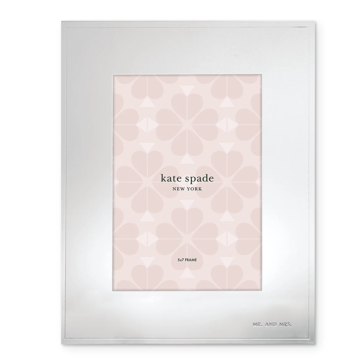 The new Mr. and Mrs. will appreciate this silver-plated frame, especially since it’s etched with their new titles: Mr. and Mrs.! The frame is a gift they’ll appreciate for years to come. Crafted of silver-plated metal. Holds an 8 x 10 photo. H: 12 1/4 x L:: 10 1/4 8 1/4″ x 10 1/8″; Fits 5 x7 picture CN 240 Metal Lenox Corp Lenox 882864172730 792162L Frame Picture 5×7″ Point Darling Lenox York New Spade Kate