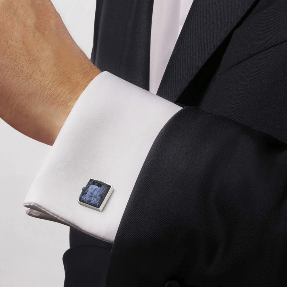 René Lalique became synonymous with French Art Nouveau decorative arts. René Lalique was born in 1860 and first began designing fine jewelry in Paris in 1881. Lalique pursued increasingly more innovative experimentation in glass commencing around 1883. Early works used the familiar “lost wax” technique by which the model is made in wax while a mold is formed around the model. Then, the wax is melted and molten glass is poured into the mold. Lalique glass was made in this manner until approximately 1905 at which time the factory was redesigned for a larger production.