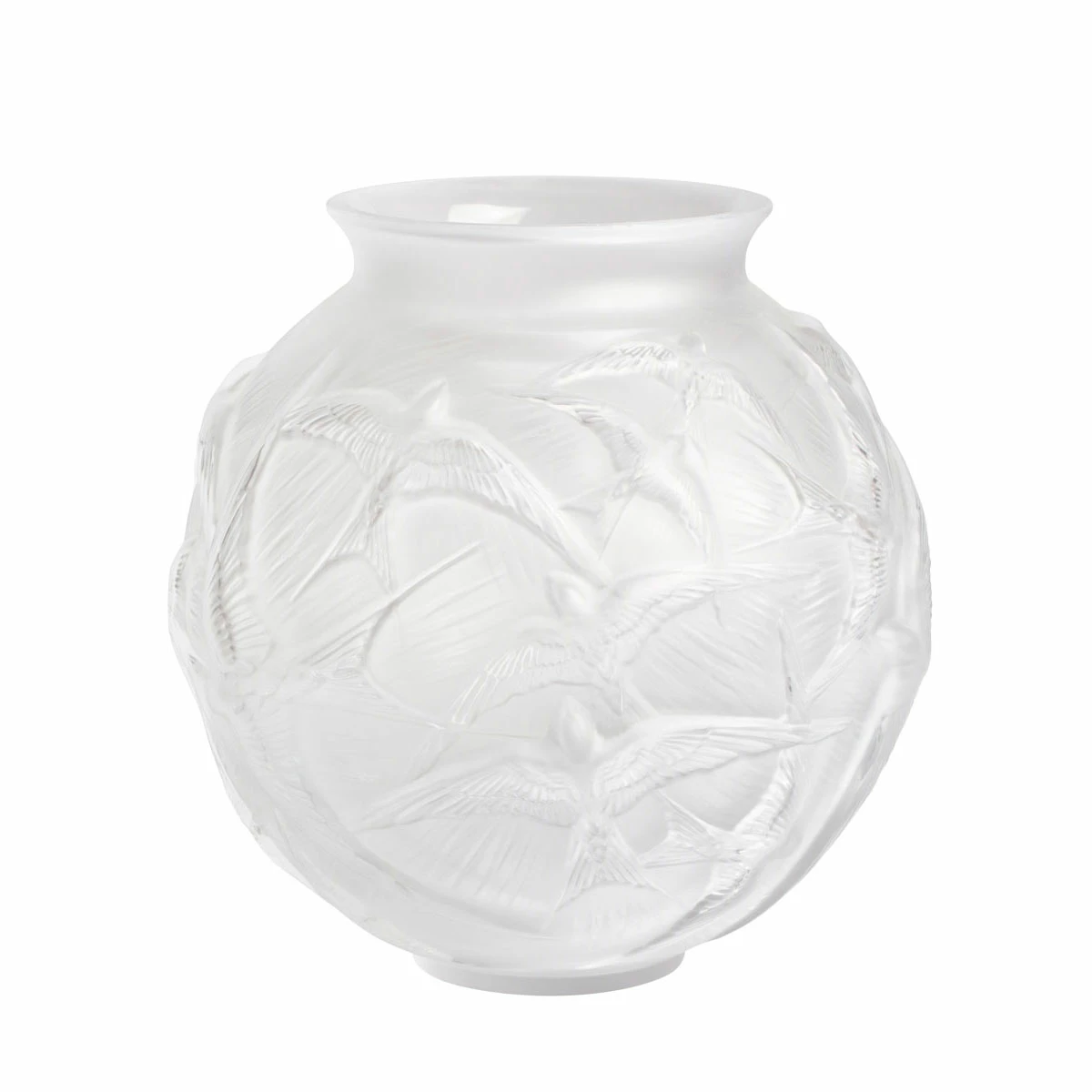 Lalique Hirondelles 8.5″ Round Vase, Clear