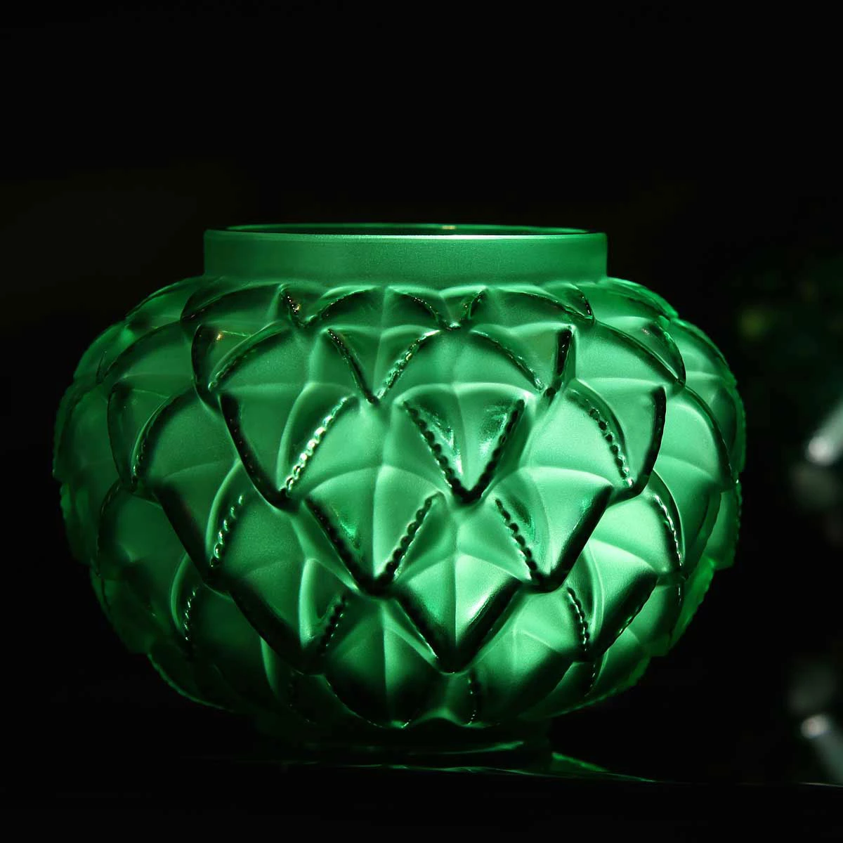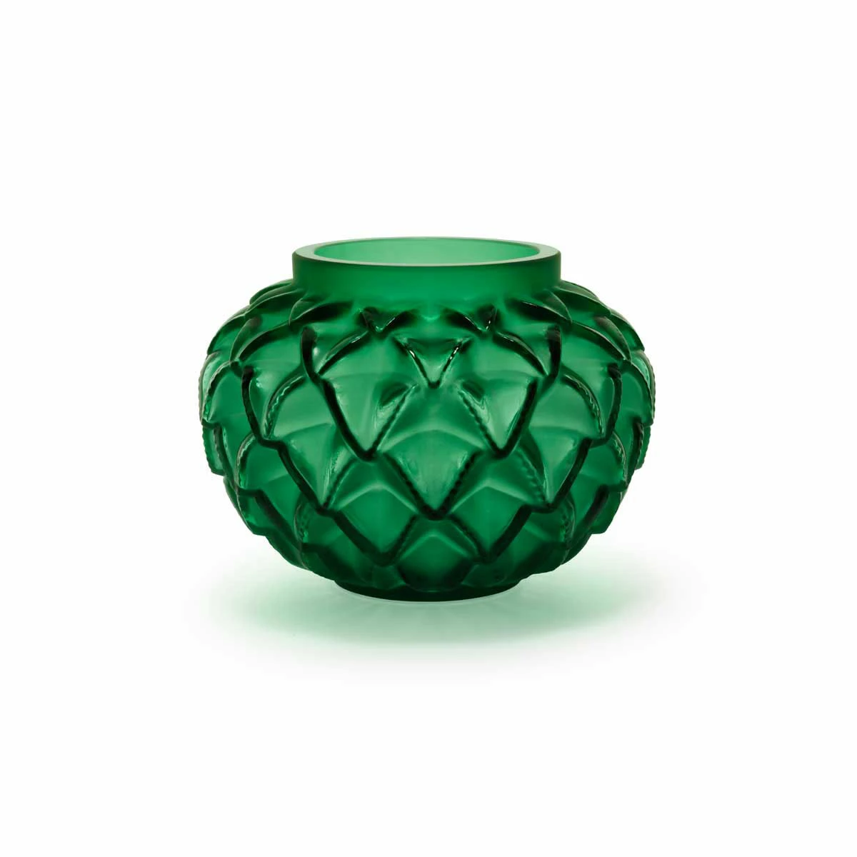The Languedoc Crystal Vase takes us to the lands of the Languedoc. Between sea and mountains, this sundrenched region in the South of France offers many landscapes: wide open spaces, shrubland, ancient massifs and beautiful gorges. The raw beauty of this land has inspired many artists, including Rene Lalique who designed this Crystal Vase with accentuated relief and generous proportions in 1929. H: 4 3/4″ x D: 6 3/8″ FR 211 Giftware, Vases and Bowls LALIQUE NORTH AMERICA Lalique 090592910016 10488800 Green Vase 6″ Languedoc Lalique Spring