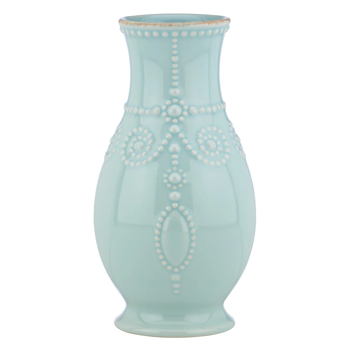 The French Perle Ice Blue 8″ Fluted Vase is ideal for displaying a single trimmed flower. Standing at a handsome 8″ in height, this powder blue ceramic vase is assertive yet unimposing. The ideal balance for any household fixture. 8″ H CN 211 China Lenox Corp Lenox 882864680600 869509L Vase 8″ Fluted Blue Ice Perle French Lenox