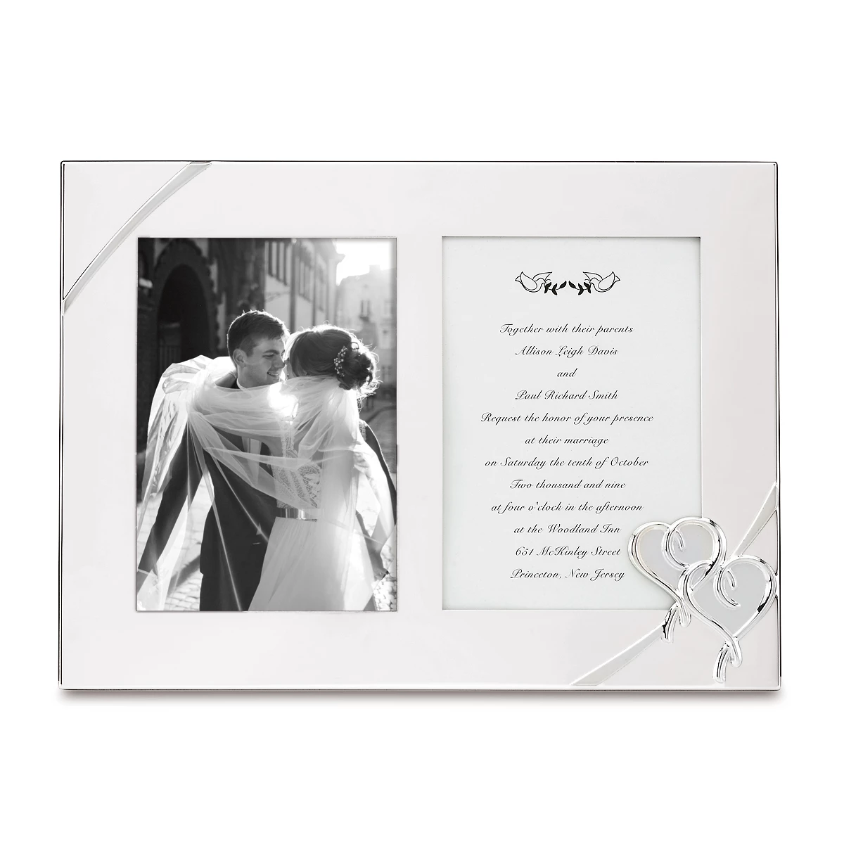This silver-plated frame is ideal for showcasing a picture of the happy couple alongside their original wedding invitation. The interlaced heart motif adds to the romance and charm indicative of the True Love collection. 9″ 12 1/2″ CN 240 Metal Lenox Corp Lenox 0882864242532 812614L Frame Picture Invitation Double Love True Lenox