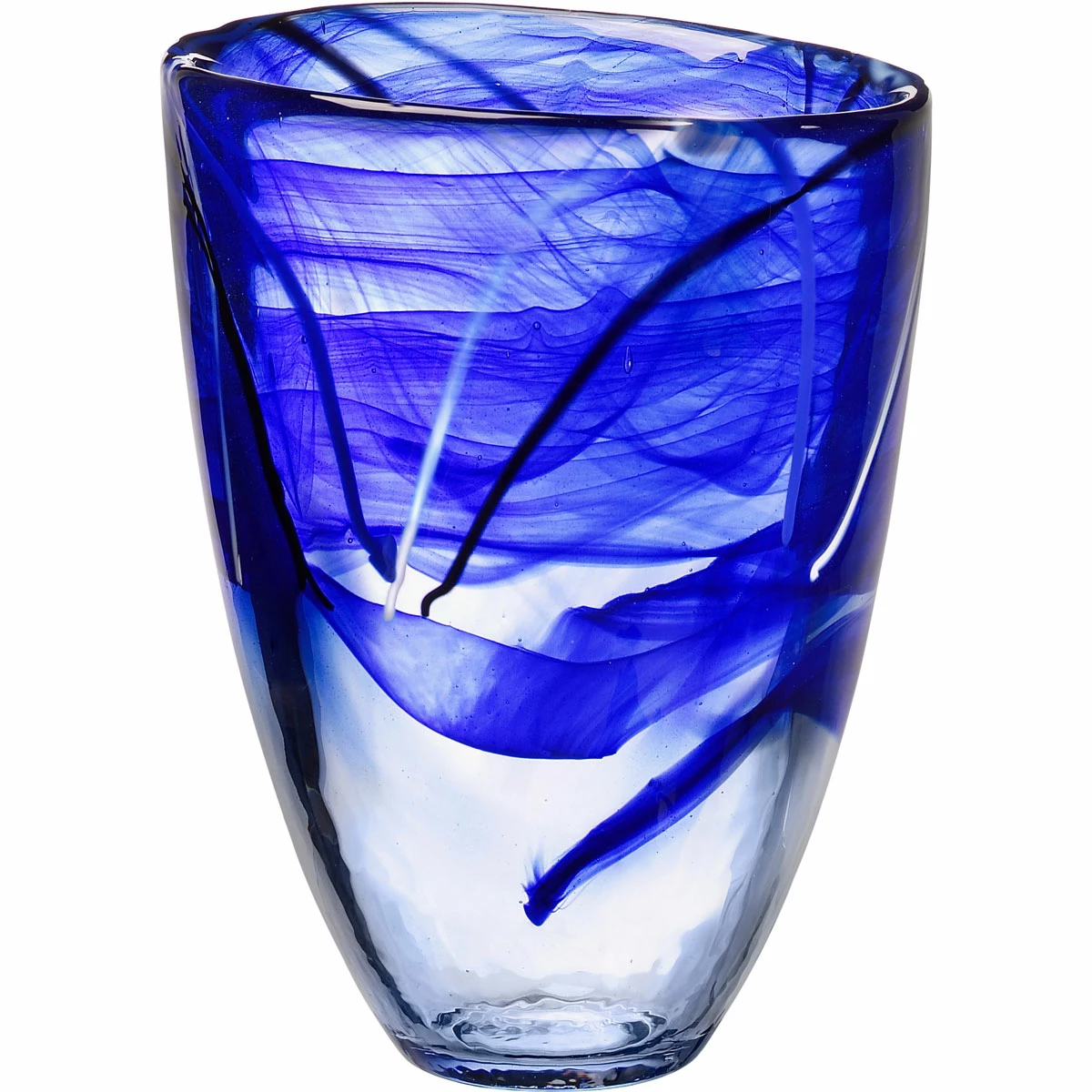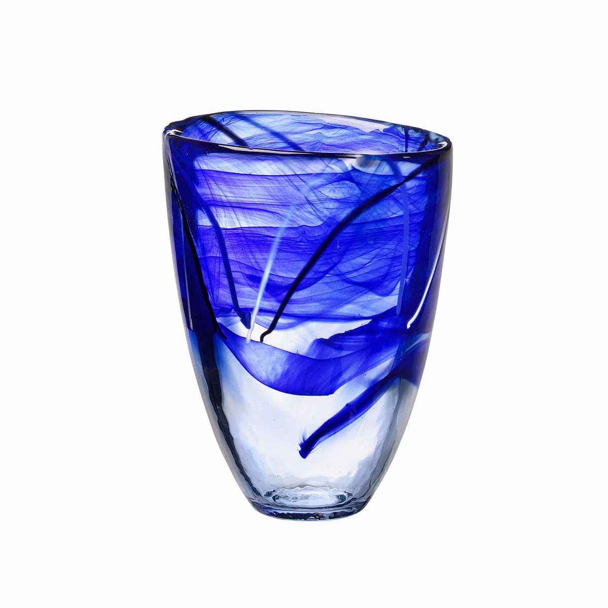 Designed by Anna Ehrner. With hand-applied decoration of swirls of contrasting calligraphic lines, each Contrast piece is a unique work of art which can be used everyday and or highlight the holidays. The pure forms are crystal arenas for the drama of free-flowing patterns that bring out the inner nature of the glass, making every piece unique. These dramatic pieces work into any interior design scheme, functionally or purely for display, and will be prized as a gift. H: 8″ x W: 6″ SE 211 Crystal RSI Orrefors Kosta Boda 7391533410125 7041012 Blue Vase Crystal Contrast 8″ Boda Kosta