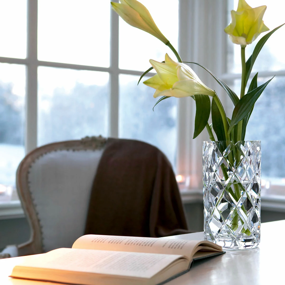 The vase in the Sofiero collection, designed by Gunnar Cyren in 1960, is a timeless Scandinavian classic from Orrefors. It has a deep-cut motif, which beautifully refracts light in the thick crystal. Sofiero Vase is both decorative and functional, well-suited for smaller floral arrangements. 211 H: 7.87″ W: 4.33″ Crystal TR RSI Orrefors Kosta Boda 7319673834212 6383421 Vase Crystal Cylinder 7.87″ Sofiero Crystal Orrefors