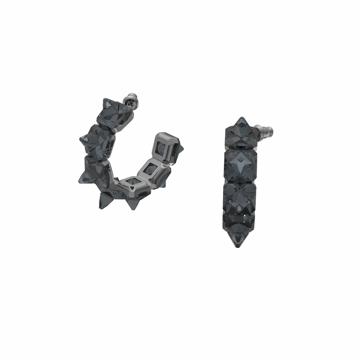 Crafted from elegant, gray, pyramid-cut crystals on ruthenium-plated, semi-circular frames, these genderless, half-hoop earrings are inspired by the work of artist Emma Kunz. A modern, geometric statement that can be worn alone, or layered with other jewelry from the Chroma family. These earrings are part of the Chroma family, designed by Creative Director Giovanna Engelbert for Collection II. RS 216 Jewlery SWAROVSKI FINANCIAL SERVICES Swarovski 191453167355 5613681 Plated Ruthenium Gray Crystals Cut Pyramid Earrings Hoop Chroma Swarovski