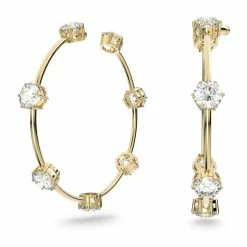 This pair of minimalist hoop earrings are designed with a touch of stardust, featuring a gold-tone plated frame accented with round, brilliant cut stones arranged to mimic constellations. Easy and elegant, they can be worn day or night, either alone or with other pieces from the Constella family for a modern take on classic solitaire jewelry. These earrings are part of the Constella family, designed by Creative Director Giovanna Engelbert for Collection II. Length: 2 1/2″ IN 216 Jewelry SWAROVSKI FINANCIAL SERVICES Swarovski 191453165375 5622722 Earrings Pierced Hoop Constella Plated Gold-Tone and Crystal Swarovski
