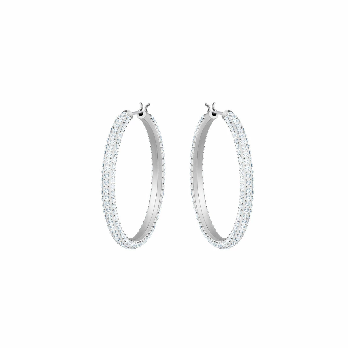 Swarovski Crystal Swarovski Stone Hoop Pierced Earrings, White, Rhodium
