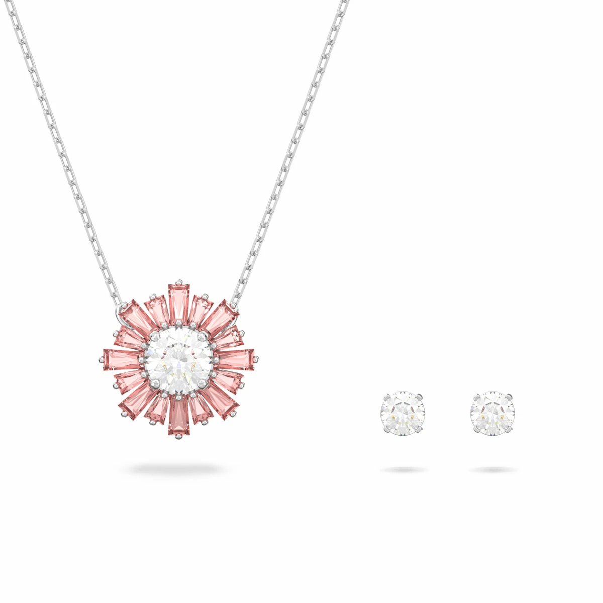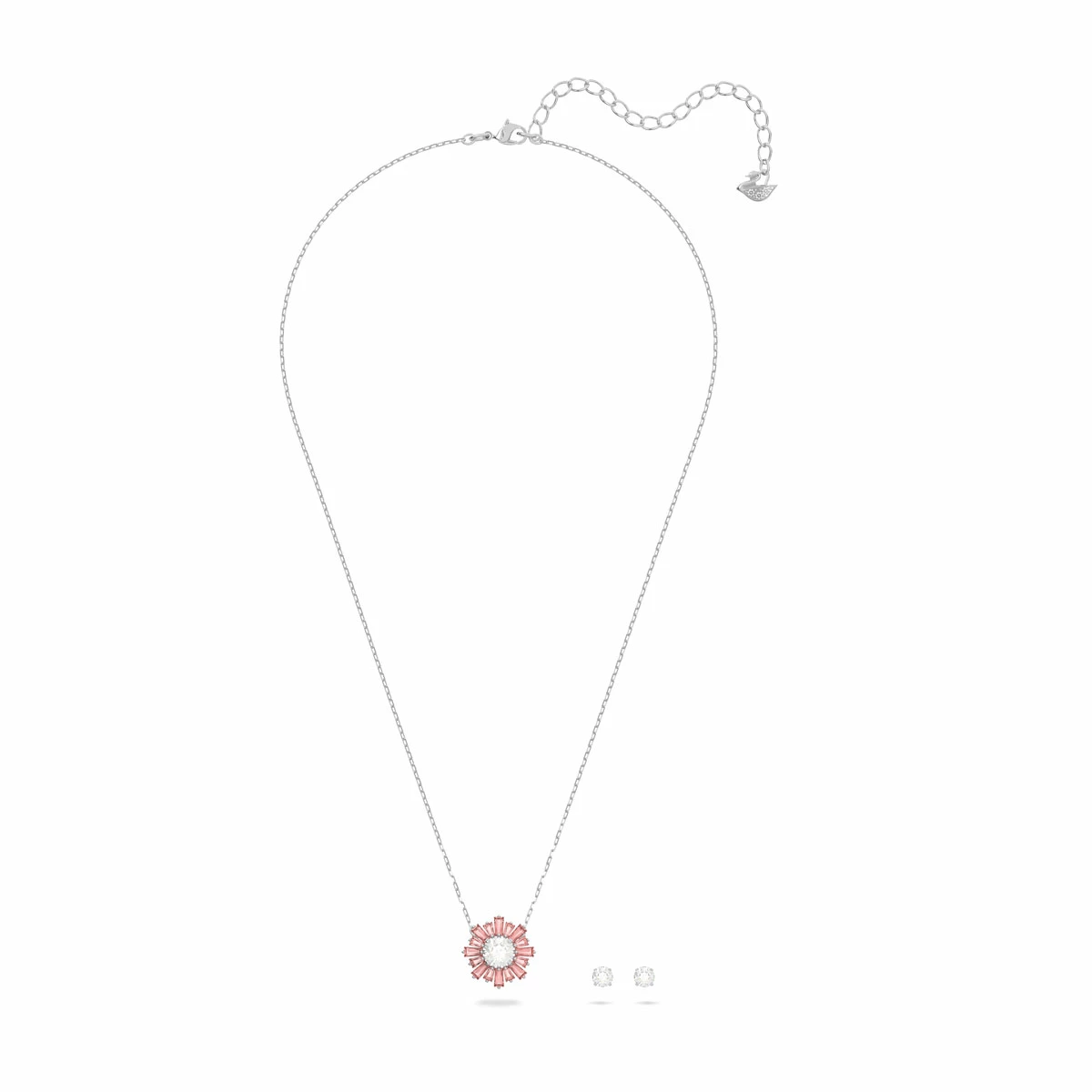 Swarovski Crystal Swarovski Sunshine Necklace And Earrings Set, Pink, Rhodium Plated