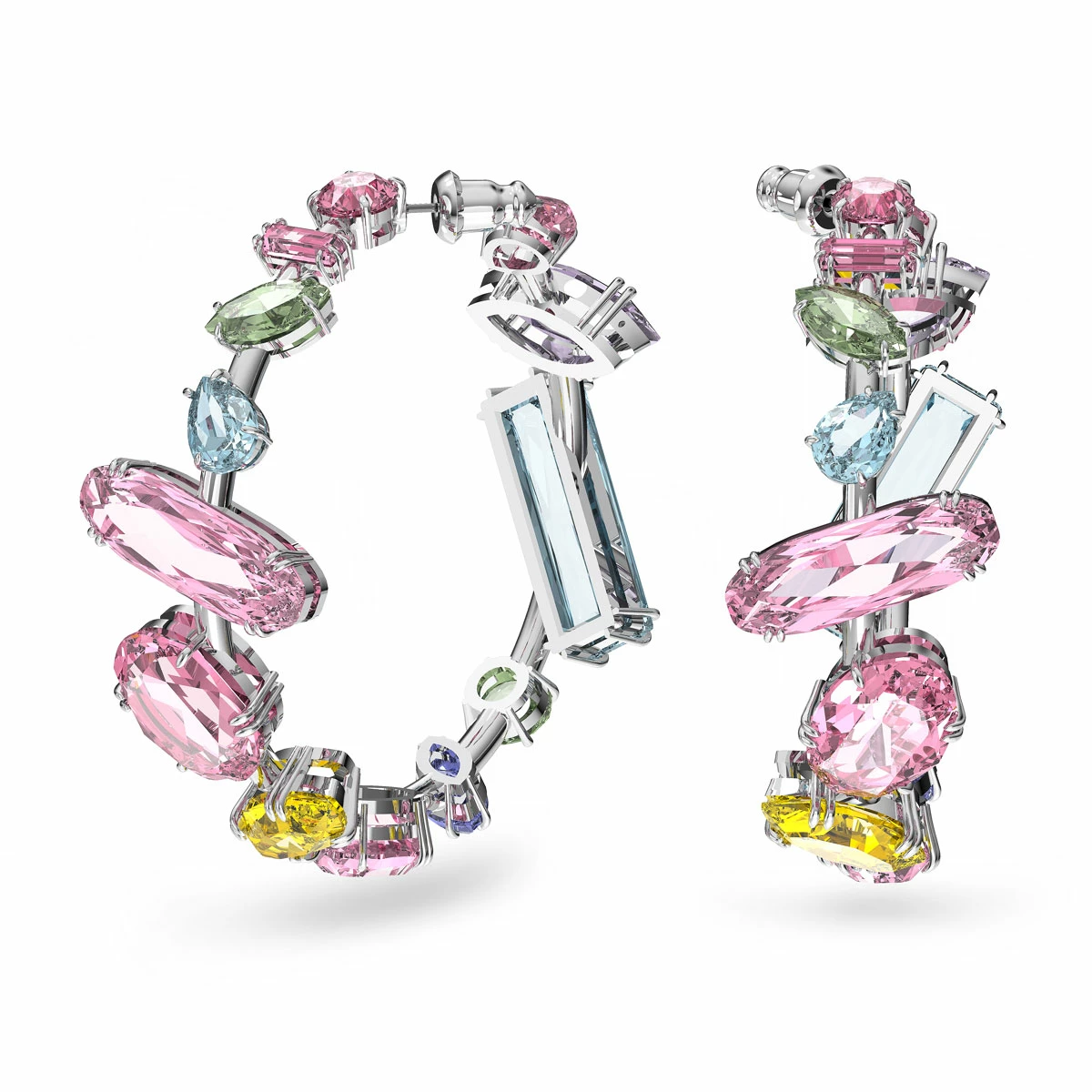 Swarovski Gema Hoop Earrings, Precision Cut Crystals, Multicolored, Rhodium Plated