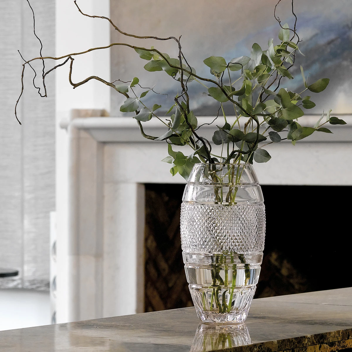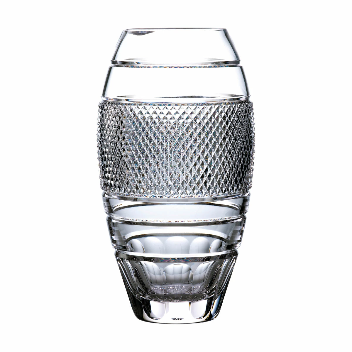 Drawing inspiration from the rugged Irish coastline that stretches between Tramore and Dungarvan, now a beautiful scenic area where the copper mining industry thrived in the 19th Century. The Copper Coast Master Craft Vase 13″ is hand made in Ireland at the House of Waterford Crystal. The tall elliptical shape is perfect for floral arrangements. The wide central band of tight refracting caro cuts represent the movement of the ocean, which are framed by deep cut rings to symbolize the horizon. Olive cuts at the base reflect the minerals extracted from the rocks by the ancient miners. Stunningly crafted using skills perfected over decades, the Copper Coast collection embodies the Irish tradition for bringing people together making everyday moments special with outstanding crystal design. H: 13″ W: 7.2″ D: 7.2″ IE 211 Crystal WWRD Waterford Crystal 701587409421 40034067 Edition Limited 13″ Vase Coast Copper Mastercraft Crystal Waterford