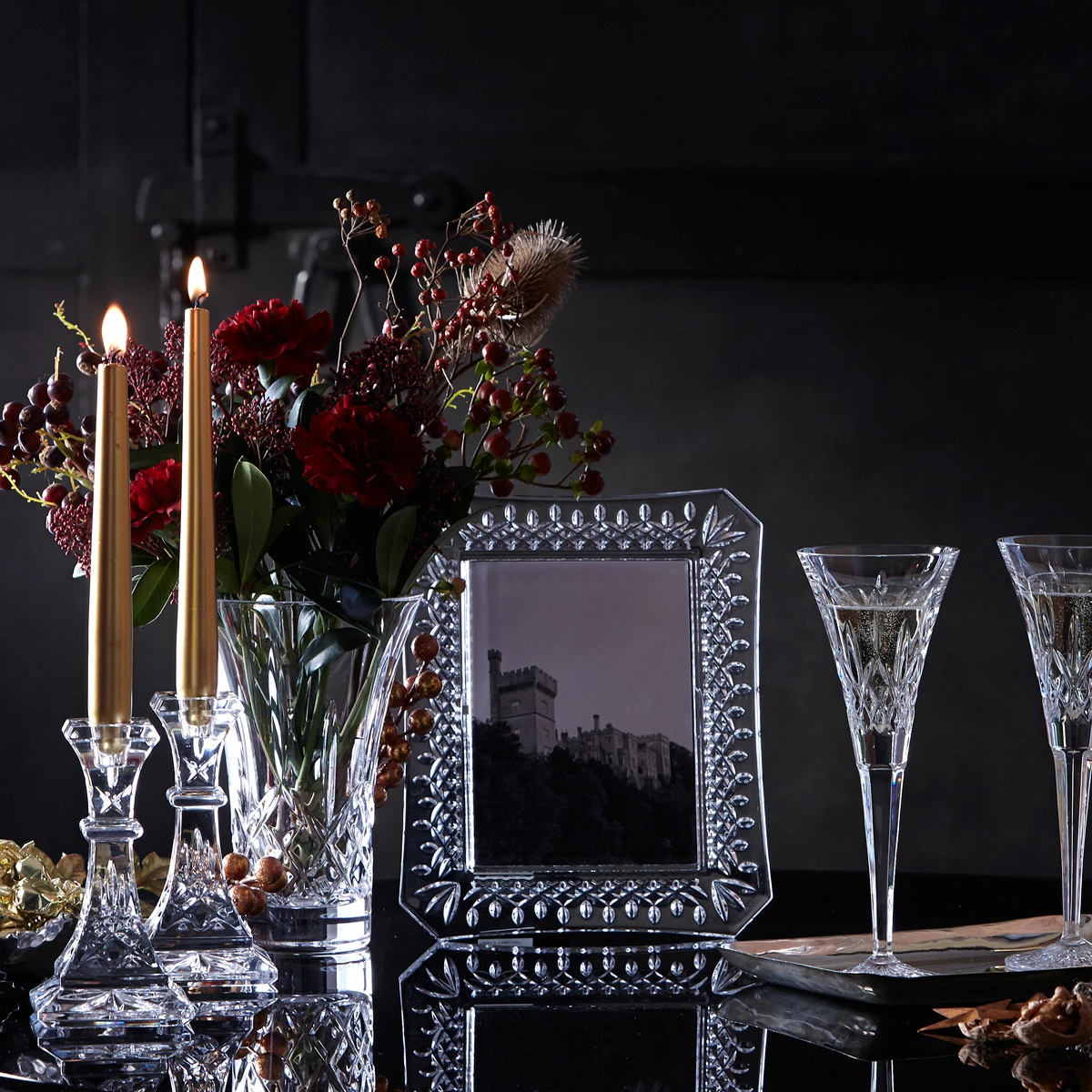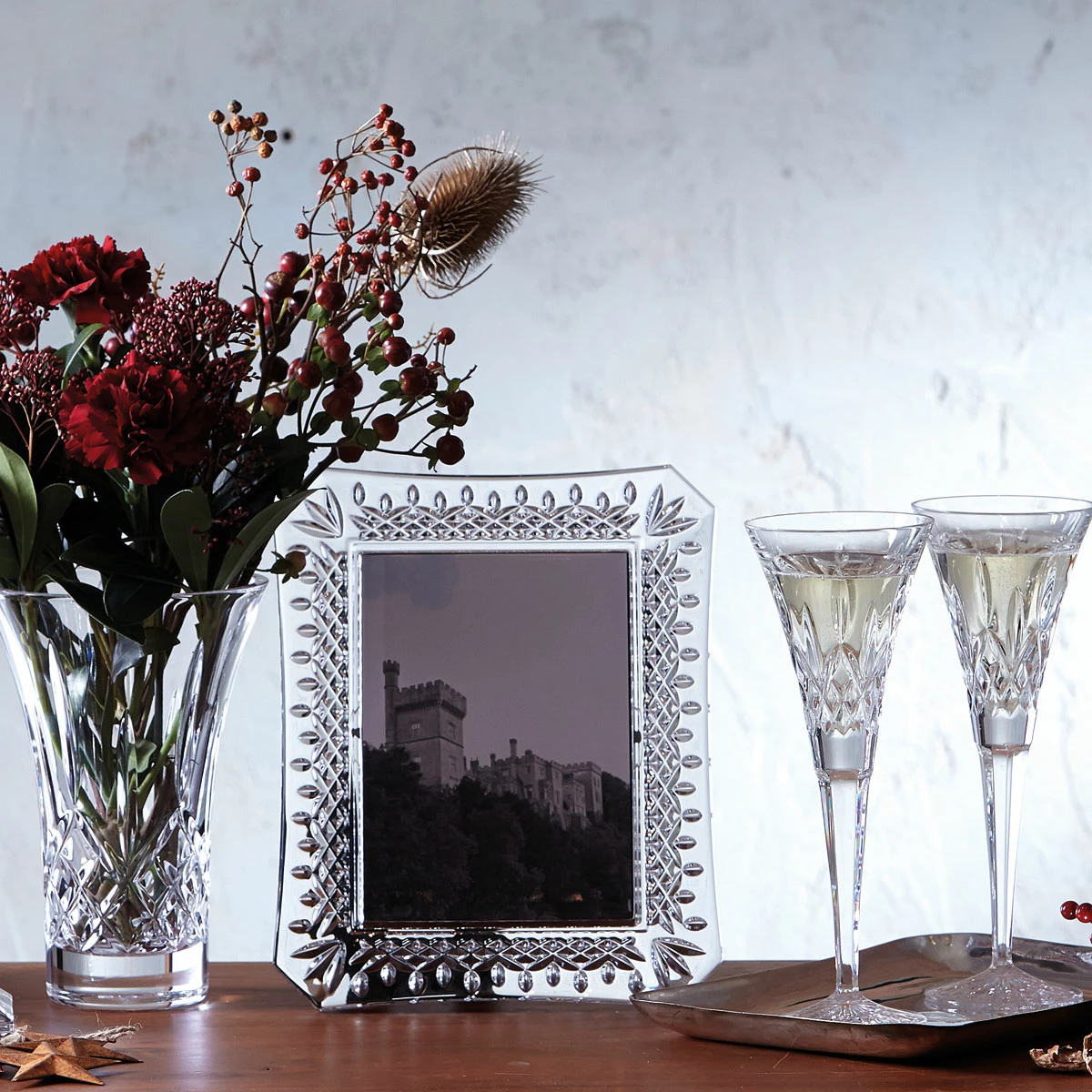 The Lismore pattern is celebrating 70 years in 2022. The famous Lismore pattern was created in 1952 by Miroslav Havel, Waterfords Chief of Design who drew inspiration for the patterns signature diamond and wedge cuts from the rugged charm of Lismore Castle in the idyllic countryside of County Waterford. H: 14.76″ W: 11.6″ SI 240 Crystal WWRD Waterford Crystal 701587457897 1060409 Frame Picture Crystal 10″ x 8 Lismore Waterford