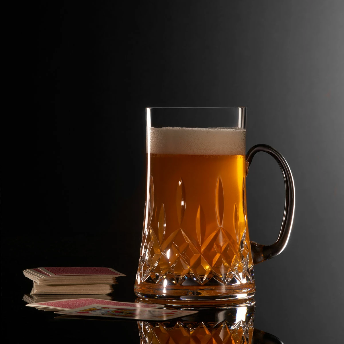 Crafted in crystal with the signature Lismore cutting pattern, these impressively substantial beer glasses are designed to enhance the flavor and appearance of any brew, from delicate Belgian Pilsners to robust English Stouts.