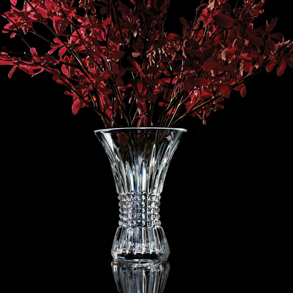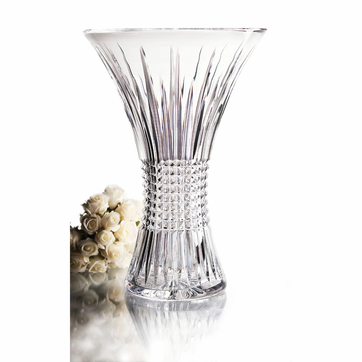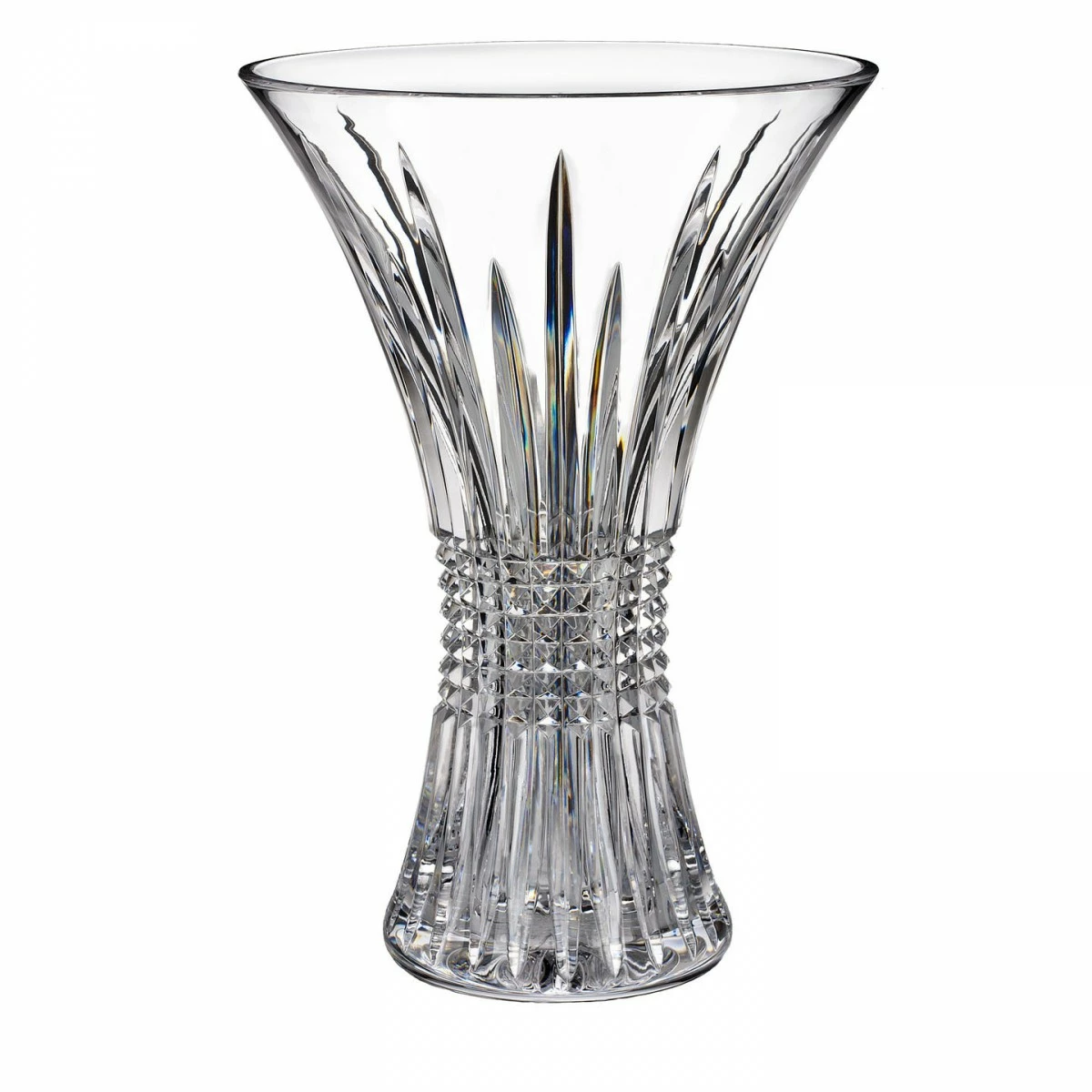 The Lismore Diamond collection is a strikingly modern reinterpretation of the Lismore pattern, which includes Waterford’s most advanced and original giftware statements. Lismore Diamond is the signature pattern for the Lismore 60th Anniversary celebration, featuring horizontal cuts over alternating-height vertical cuts, which create light-refracting, diamond-like facets of unsurpassed prismatic reflectivity. Synonymous with luxury and fine living, the Waterford Crystal, Lismore pattern has been Waterford’s pre-eminent design for 60 years. Derived from the Gaelic lios more, meaning great ringfort, Lismore was inspired by the gothic architecture of the 800 year-old Lismore Castle in County Waterford, Ireland. Ancestral home to England’s Dukes of Devonshire since the 18th century, the famed castle overlooks the beautiful Muster countryside of the Irish coast. Influenced by the 18th century Crystal designs of Waterford founders George and William Penrose, Waterford Crystal, designer Miroslav Havel created the Lismore pattern in 1953. The pattern features refined diamond cuts- a signature of early Penrose designs- and a symmetrical series of upward flowing wedge cuts. The clarity of the Crystal combined with the refraction of light through the cutting created what the world now treasures- the enduring allure of Lismore. H: 14″ SI 211 Giftware, Vases and Bowls WWRD Waterford Crystal 024258504288 156563 Vase 14″ Diamond Lismore Waterford Valentine