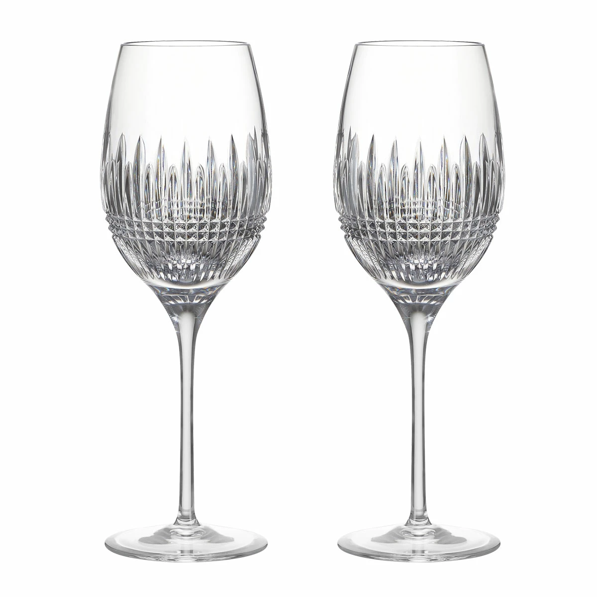 The Lismore Diamond pattern is an enduring reinvention of the Waterford classic; characterised by intricate diamond cuts rendered in radiant fine crystal. Expertly designed with a narrow bowl to accentuate the flavor and crispness of any white wine, The Lismore Diamond White Wine Pair features the clarity and weight synonymous with Waterford. H: 9.9″ W: 3.4″ L: 3.4″ Cap: 15.55 oz. SI 215 Crystal WWRD Waterford Crystal 701587472074 1065339 Pair Glasses Medium Wine White Diamond Lismore Waterford